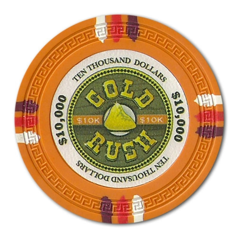 Представляем Вам дизайн Gold Rush. Внутреннее оформление обрамляет молдинг Greek Key. Фишка Gold Rush имеет 12 тонких боковых меток сгруппированых по 3 полоски. Оформление фишки схоже с историческими фишками казино Golden Nugget.