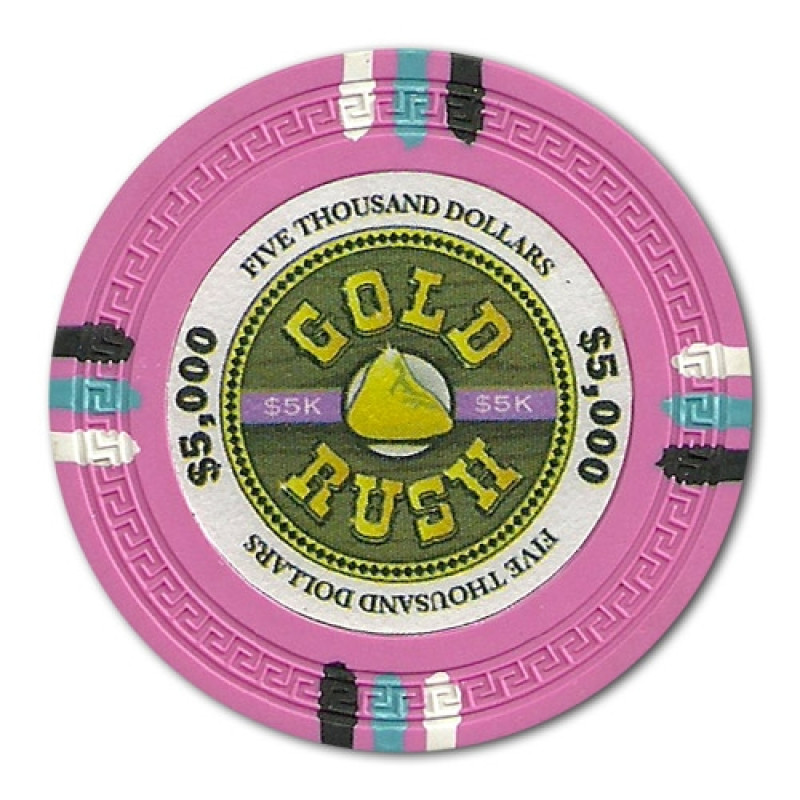 Представляем Вам дизайн Gold Rush. Внутреннее оформление обрамляет молдинг Greek Key. Фишка Gold Rush имеет 12 тонких боковых меток сгруппированых по 3 полоски. Оформление фишки схоже с историческими фишками казино Golden Nugget.